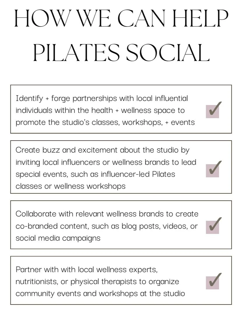 We already work with a Pilates Studio! By working closely with the studio we've honed a winning strategy, driving a 124% increase in interactions and a 32.4% rise in reach. We delve deep into metrics, analyze engagement patterns, audience demographics, and conversion rates to fine-tune our approach continually. Through audits, 1:1 Instagram coaching and Instagram management, we can help Pilates Social amplify their message and drive engagement.